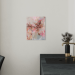 Inspired by fairies, this piece explores a dreamy world where glamour meets fantasy. Painting comes with a handmade wooden frame in the color oak. It is signed and dated on the back and comes wired and ready to hang. The artwork is coated with an acrylic finishing spray for a long-lasting, scratch-resistant protective surface.