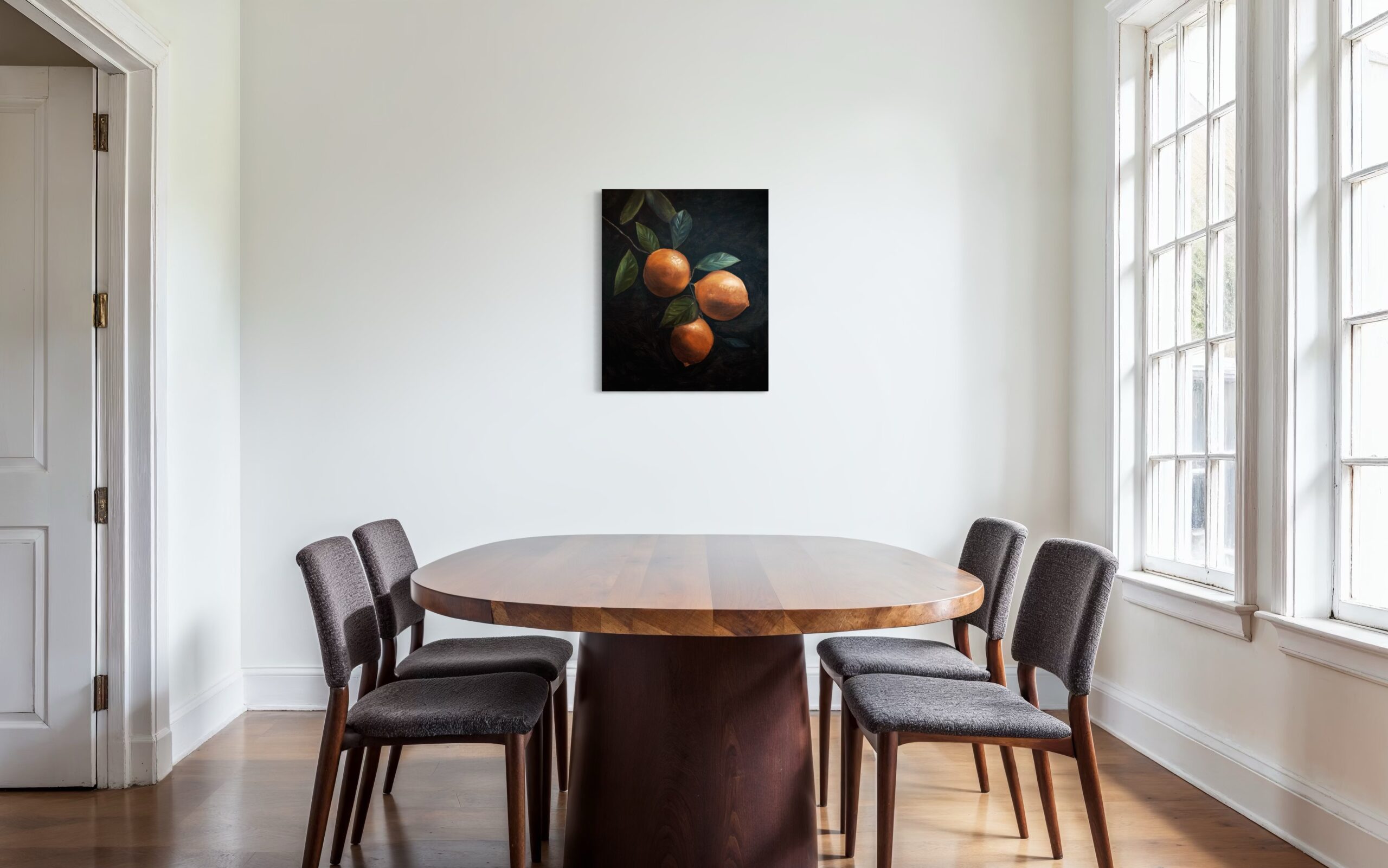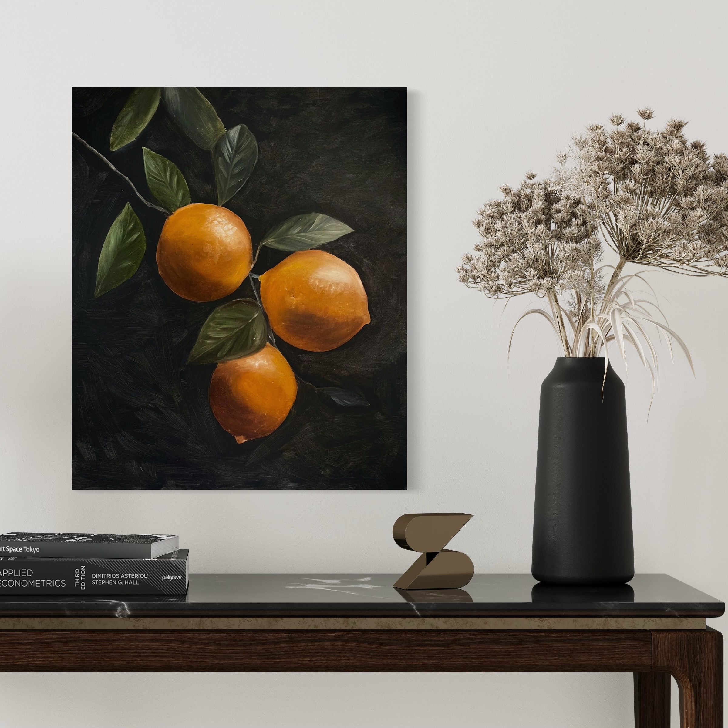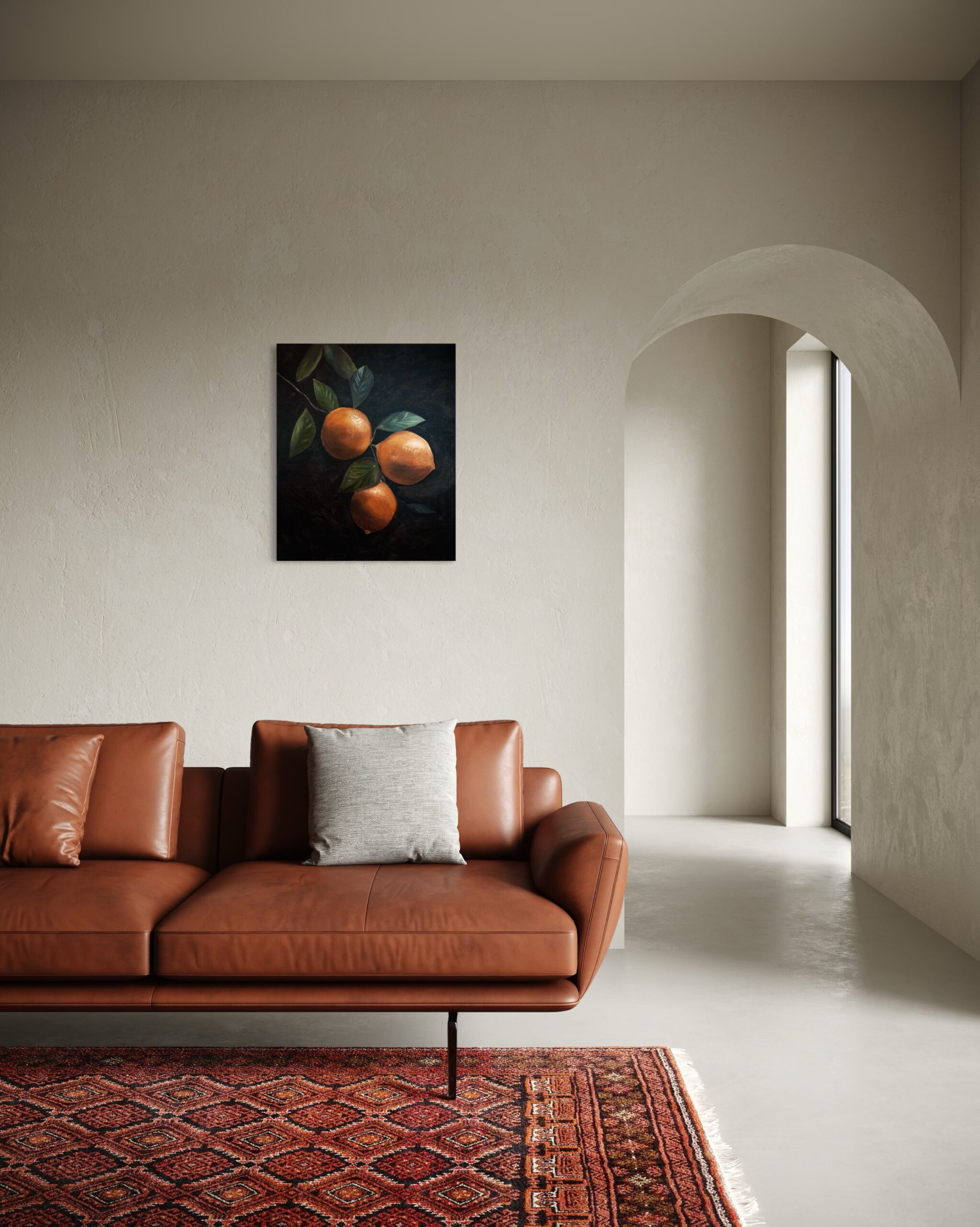 Inspired by citrus fruit from an Italian garden, with a balance of fresh sourness and gentle sweetness. The painting comes with a handmade wooden frame in the color oak. It is signed and dated on the back and comes wired and ready to hang. The artwork is coated with an acrylic finishing spray for a long-lasting, scratch-resistant protective surface.